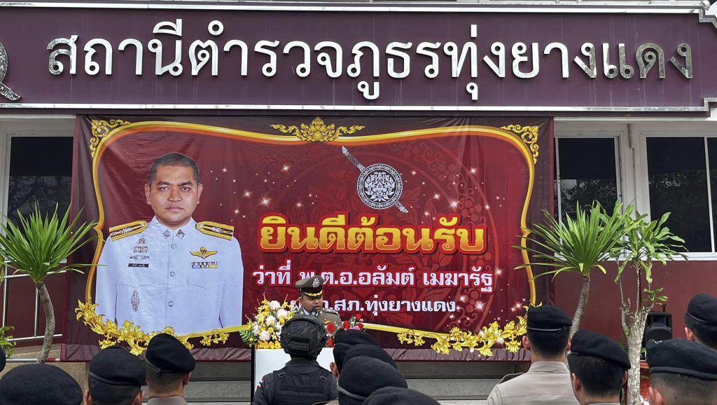 ข้าราชการตำรวจ สภ.ทุ่งยางแดง ได้นำแถวต้อนรับ พ.ต.อ. อลัมต์ เมฆารัฐ ซึ่งได้มารับ ตำแหน่งผู้กำกับการ สภ.ทุ่งยางแดง คนใหม่ และได้ให้โอวาสในการทำงานแก่ข้าราชการตำรวจ สภ.ทุ่งยางแดง