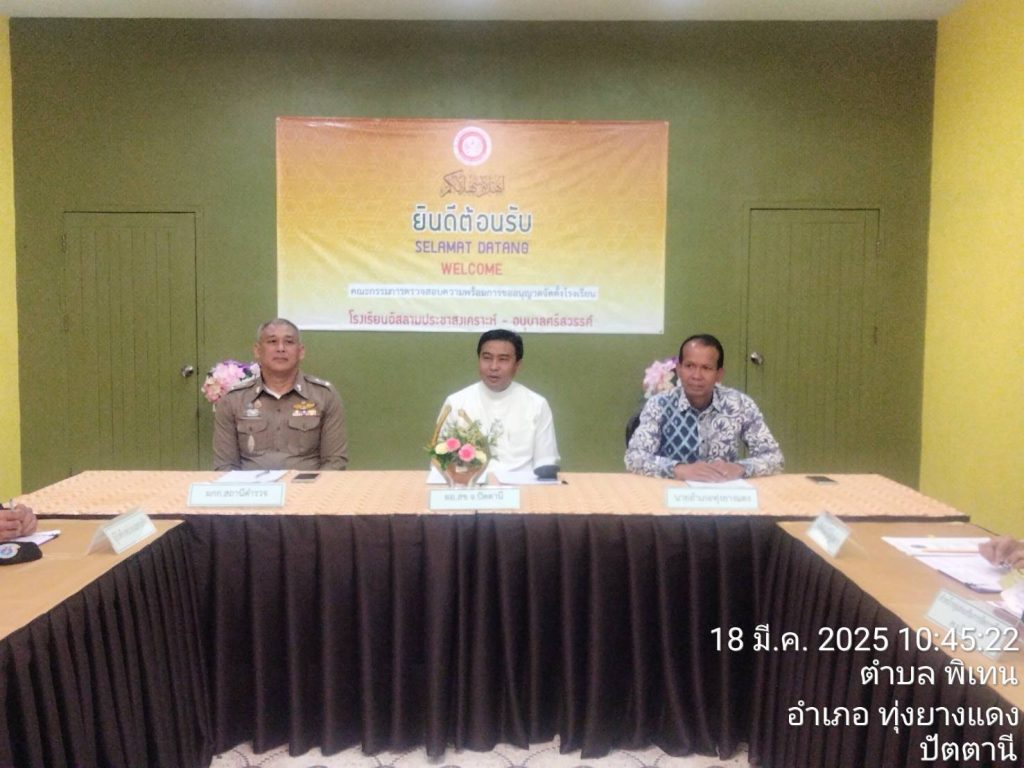 ร่วมเป็นคณะกรรมการตรวจพิจารณาการอนุญาต ให้ใช้อาคารเรียน ณ.โรงเรียนอิสลามประชาสงเคราะห์ ม.4 ต.พิเทน อ.ทุ่งยางแดง จ.ปัตตานี