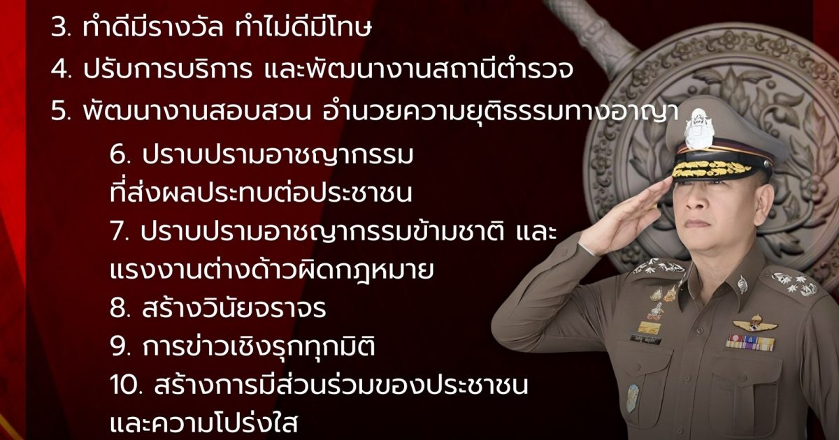 15 นโยบาย พล.ต.อ.กิตติ์รัฐ พันธุ์เพ็ชร์ ผู้บัญชาการตำรวจแห่งชาติ