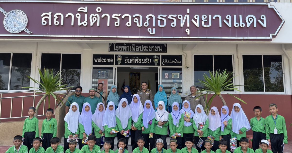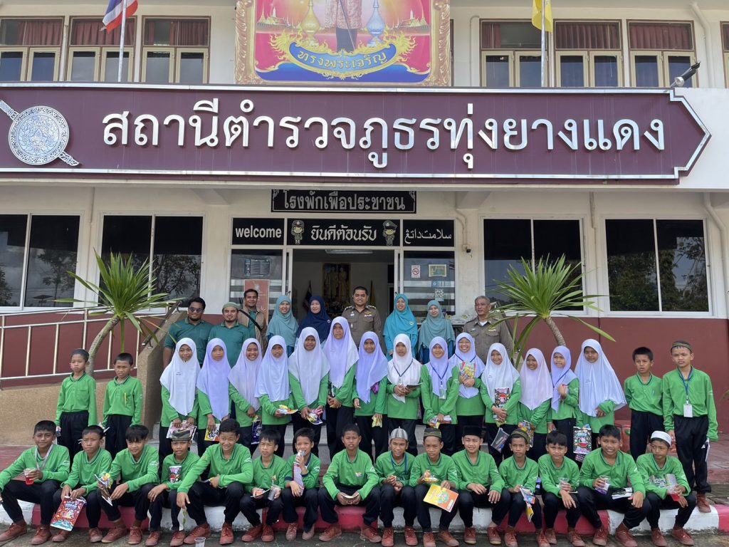 ร่วมต้อนรับคณะครูและนักเรียนโรงเรียนบ้านพิเทน มาเรียนรู้จากสถานที่จริงตามโครงการแนะแนวการศึกษา อาชีพ เสริมสร้างทักษะชีวิตและสังคม และได้ร่วมลงนาม MOU โรงเรียนสีขาว ทาง สภ.ทุ่งยางแดง ได้แนะนำสถานที่ของสายงานต่างๆพร้อมบรรยายเรื่องการทำงานของตำรวจ เพื่อให้กำลังใจและสร้างแรงบันดาลใจให้แก่นักเรียนในการศึกษาต่อไป ณ สภ.ทุ่งยางแดง อ.ทุ่งยางแดง จ.ปัตตานี เพื่อสร้างความสัมพันธ์ที่ดีระหว่างเจ้าหน้าที่ตำรวจกับบุคลากรครูและเด็กนักเรียนในพื้นที่